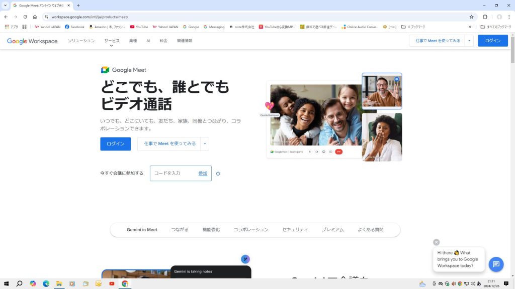 グーグルアカウントをお持ちでなくてもブラウザから参加ができ無料です。