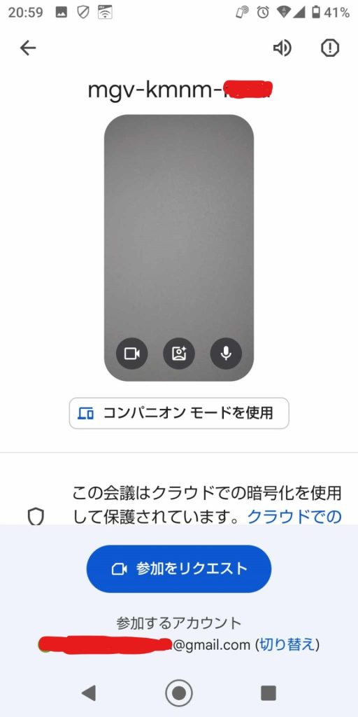 レッスン時間になりましたらMeetを開き「参加をリクエスト」
